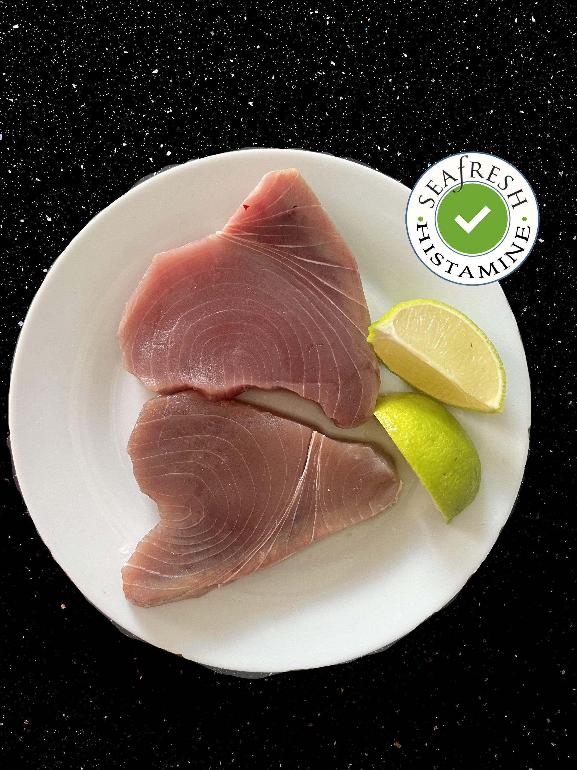 FROM FROZEN: Oven: remove all packaging and place the tuna in a lose foil parcel, bake for 25 mins at 190c. When done, check the Tuna is cooked in the centre, if not cover and put it back in the oven for a further 5 minutes and so on.