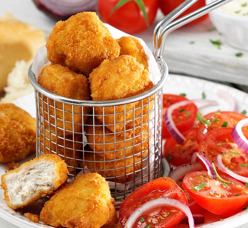 Chicken Breast Fillet (70%), Water, Rapeseed Oil, Rice Flour, Yellow Pea Flour, Maize Starch, Salt, Dextrose, Potato Starch, Rice Starch,Emulsifier: Xanthan Gum, Potato Protein, Acidity Regulator: Sodium Carbonates