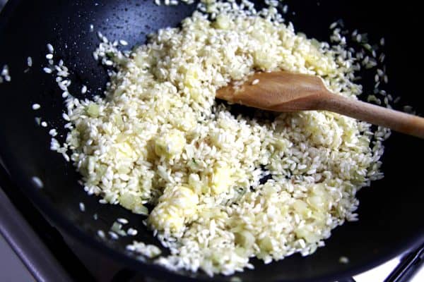 2. Add the Rice and butter and cook for a further 3-4 minutes on a low heat.