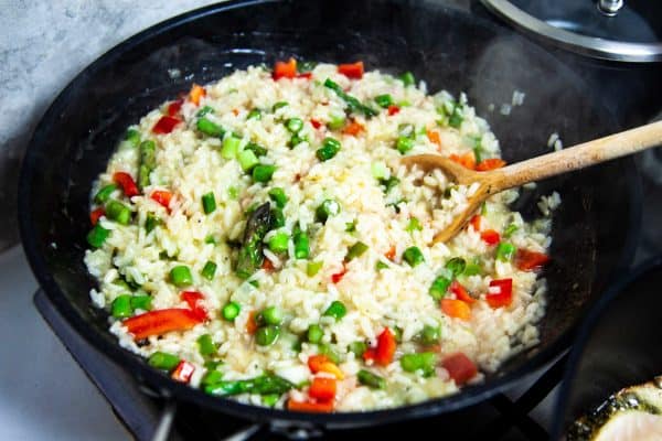 Risotto with spring onions, asparagus & red peppers with pan fried Cod loin. Shop our collection of frozen cod.